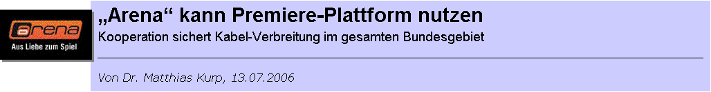 Zugang zu etwa 800.000 Premiere-Kunden im KDG-Netz erhalten. Das Satellitenangebot von Arena, das bereits im März