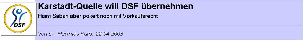 Karstadt-Quelle zurück gegeben werden. Die übrigen Anteile an DSF soll
