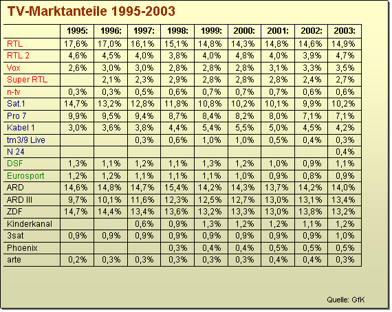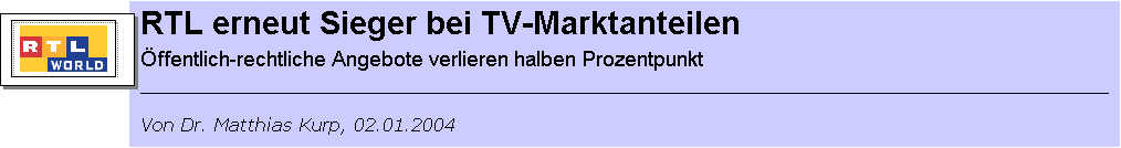 öffentlich-rechtlichen Programme 2003 im Vergleich zum Vorjahr etwa einen