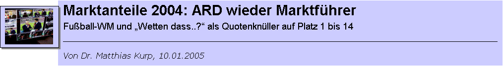 Zuschauermarktanteilen 2004 war die ARD. Mit 13,9 Prozent Marktanteil lag das