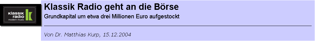 Million Klassik-Radio-Aktien zugelassen, was zehn Prozent des Grundkapitals