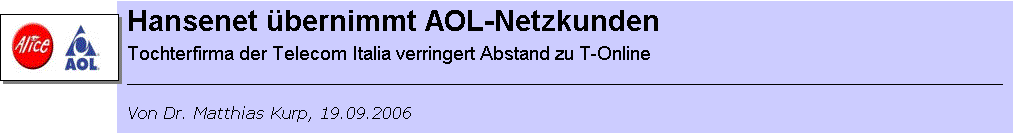 Internet-Anschlussgeschäft von AOL Deutschland wird von Hansenet übernommen.
