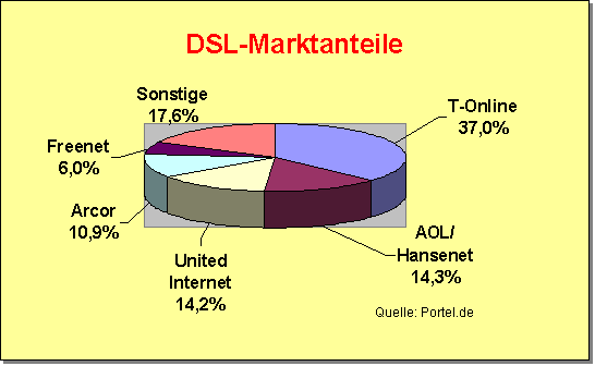 DSL-Marktanteil von etwa 15 Prozent und sind damit etwa gleich stark wie United Internet. Mehr als ein Drittel