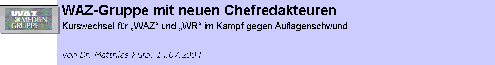 geeinigt. Dass die WAZ-Gruppe für zwei ihre Ruhrgebiets-Titel nach neuen