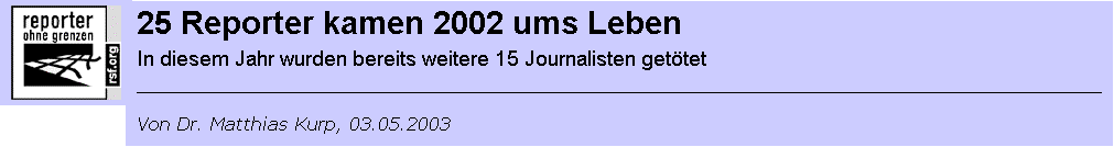 in diesem Jahr die meisten Reporter im Irak ums Leben kamen, war 2002 die