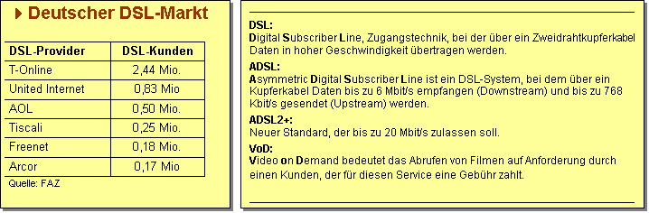 das DSL-Feld anderen zu überlassen. Der deutsche DSL-Marktführer T-Online offeriert seinen etwa 2,5 Millionen