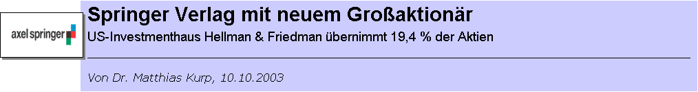 Deutsche Bank bereits im Oktober 2002 etwa 10 Prozent der Aktien des Springer Verlages an die Verleger-Witwe Friede
