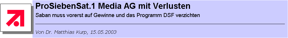 die nüchtern-negative Bilanz für das erste Quartal 2003 der ProSiebenSat.1 Media AG. Der