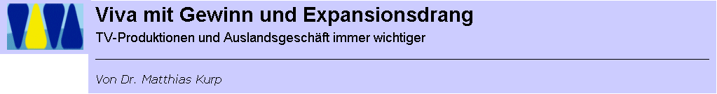 Die Integration von Brainpool scheint inzwischen abgeschlossen und macht die Viva Media AG unabhängiger von den TV-Werbegeldern. Formate wie „Ladykracher“ (SAT.1) mit Anke Engelke, „TV total“ (Pro 7) mit Stefan Raab oder „Die 10“ (RTL) mit Oliver Geissen sind inzwischen so etabliert, dass sich Brainpool Hoffnung auf weitere lukrative Aufträge von RTL, SAT.1 & Co. macht. Insgesamt haben die TV-Lizenzerlöse inzwischen mit 47 Prozent des Viva-Umsatzes die Werbeeinnahmen überholt, auf die nur noch 43 Prozent der Umsätze entfallen. Gornys Strategie, das Unternehmen zu diversifizieren, scheint also aufgegangen. Jetzt macht er sich an die Internationalisierung. „Wir setzen auf Expansion“, verkündete der Viva-Chef selbstbewusst und will MTV weiter Konkurrenz machen: „Italien, Frankreich, England – wenn es die Marktlage zulässt, wollen wir eines dieser Länder in diesem Jahr angehen.“