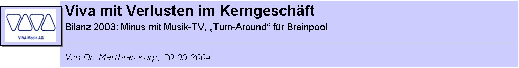 das Kölner Unternehmen am 30. März mitteilte, konnte der Umsatz der Viva Media AG um 800.000 Euro auf etwa 113,8 Millionen Euro